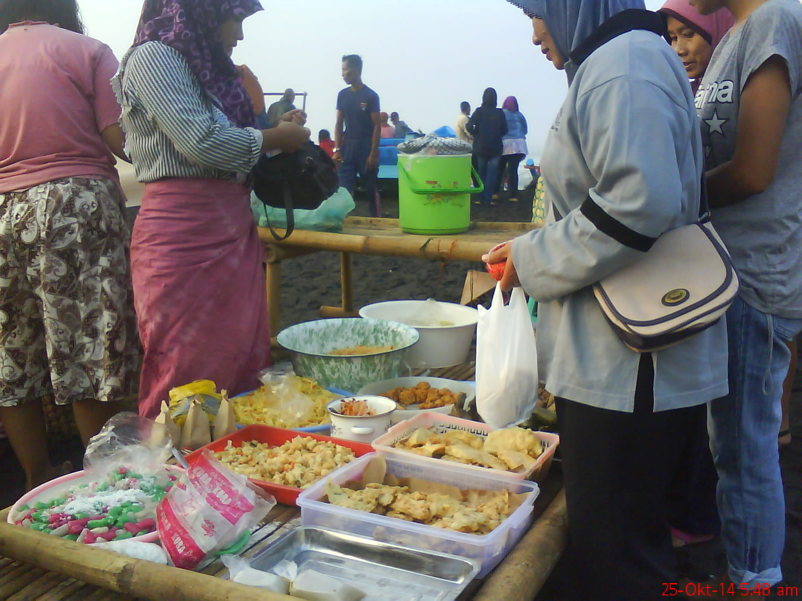 beragam pedagang makanan, jajanan, di padi hari di pantai Depok-Parangtritis