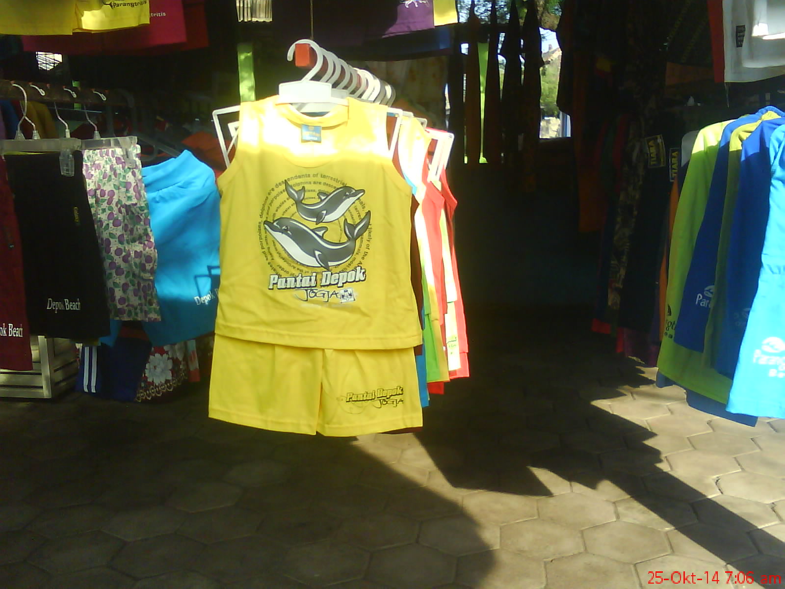 baju anak bertuliskan pantai depok sebagai cinderamata
