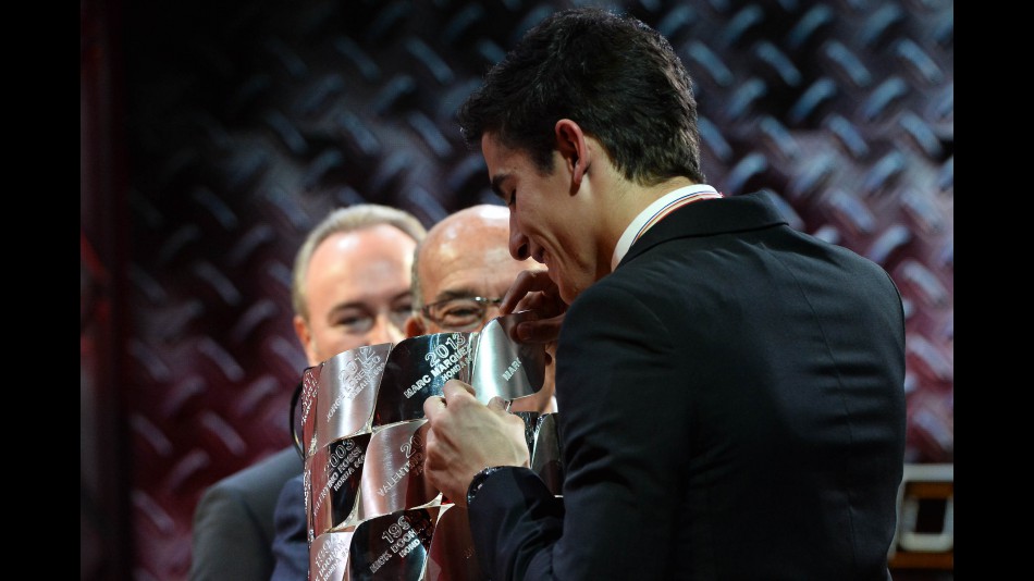 Sungguh luar biasa Juara Dunia MotoGP Marquez dari Repsol Honda Team, berlipat menerima di panggung utama dimana dia mengumpulkan penghargaan kelas premier-nya, bersanding dengan temannya  dan Juara Dunia Moto2 Tito Rabat dan adiknya Alex Marquez sang Juara Dunia Moto3.