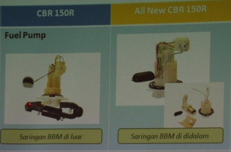 Perbedaan mencolok terletak pada konsep headlamp yang di using oleh masing-masing produk CBR 150R. Jika pada Honda CBR 150R  import Thailand memiliki single headlamp dengan daya sekitar 50/60 Watt, beds dengan halnya CBR 150R AHM yang di desain memiliki double headlamp (dual keen eyes) dengan kapasitas bohlam masing-masing berdaya listrik 35 Watt.