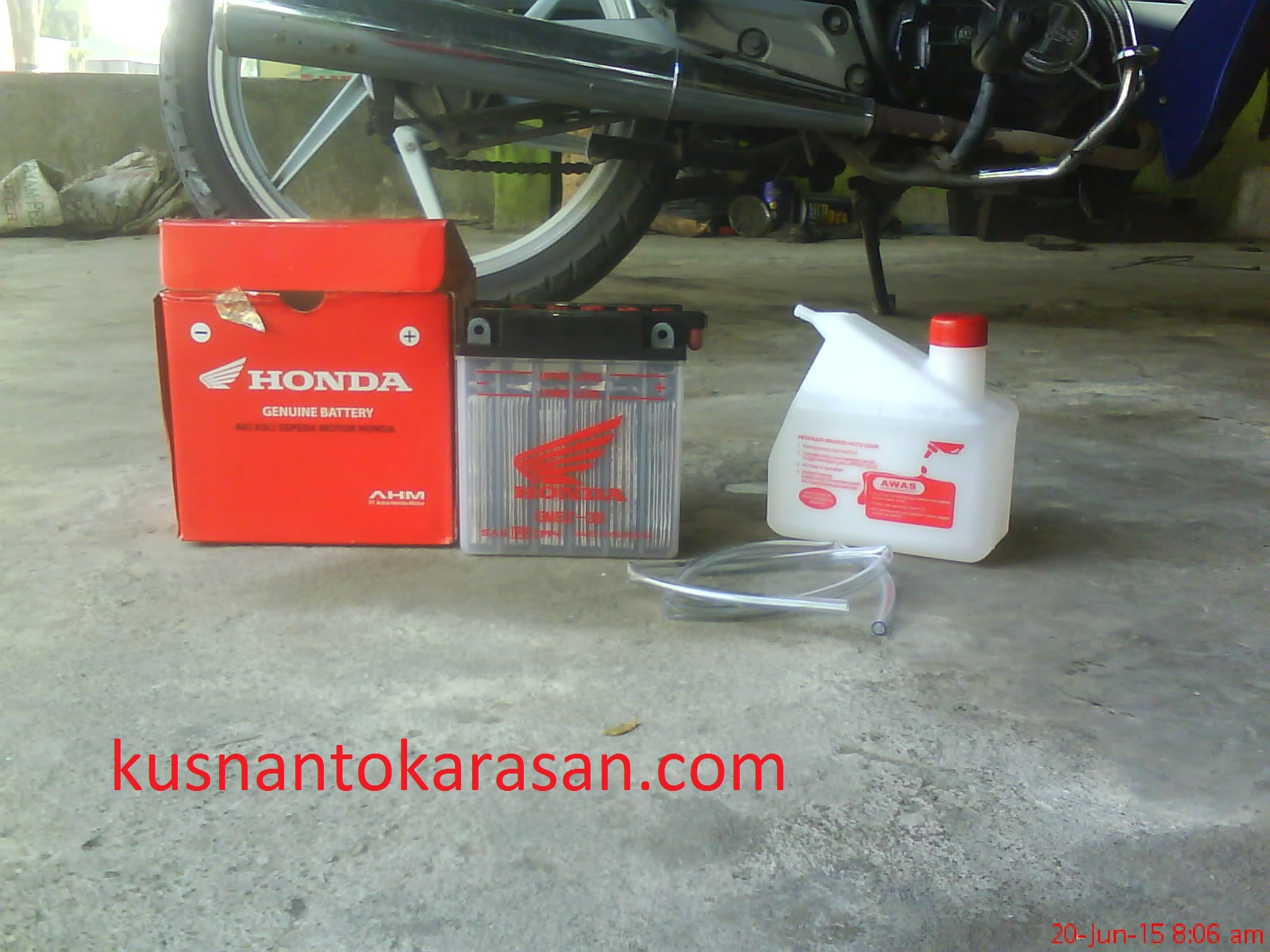 kusnantokarasan.com – Hadeww…. susahnya motor tanpa starter, jika ingin ‘move on’ harus keluarkan tenaga dikaki lebih untuk mengayuh engkol starter buat hidupkan motor. Untung ada sedikit rizki lebih untuk merawat motor, konsultasi dengan bengkel langganan, dan disuruh beli aki/ accu. Meluncurlah ke AHHAS terdekat selaku penyedia suku cadang resmi Honda. Dan gleggh…telan ludah, sedikit kaget tau harganya, aki honda untuk supra series* di Bantul seharga Rp 170.000,- (*=untuk aki honda berkode 31500GN5FMO – Battery YB5L-B= untuk honda supra series dan Mega Pro) . Yo wis lah mumpung ada dana, ya beli-beli-beli.