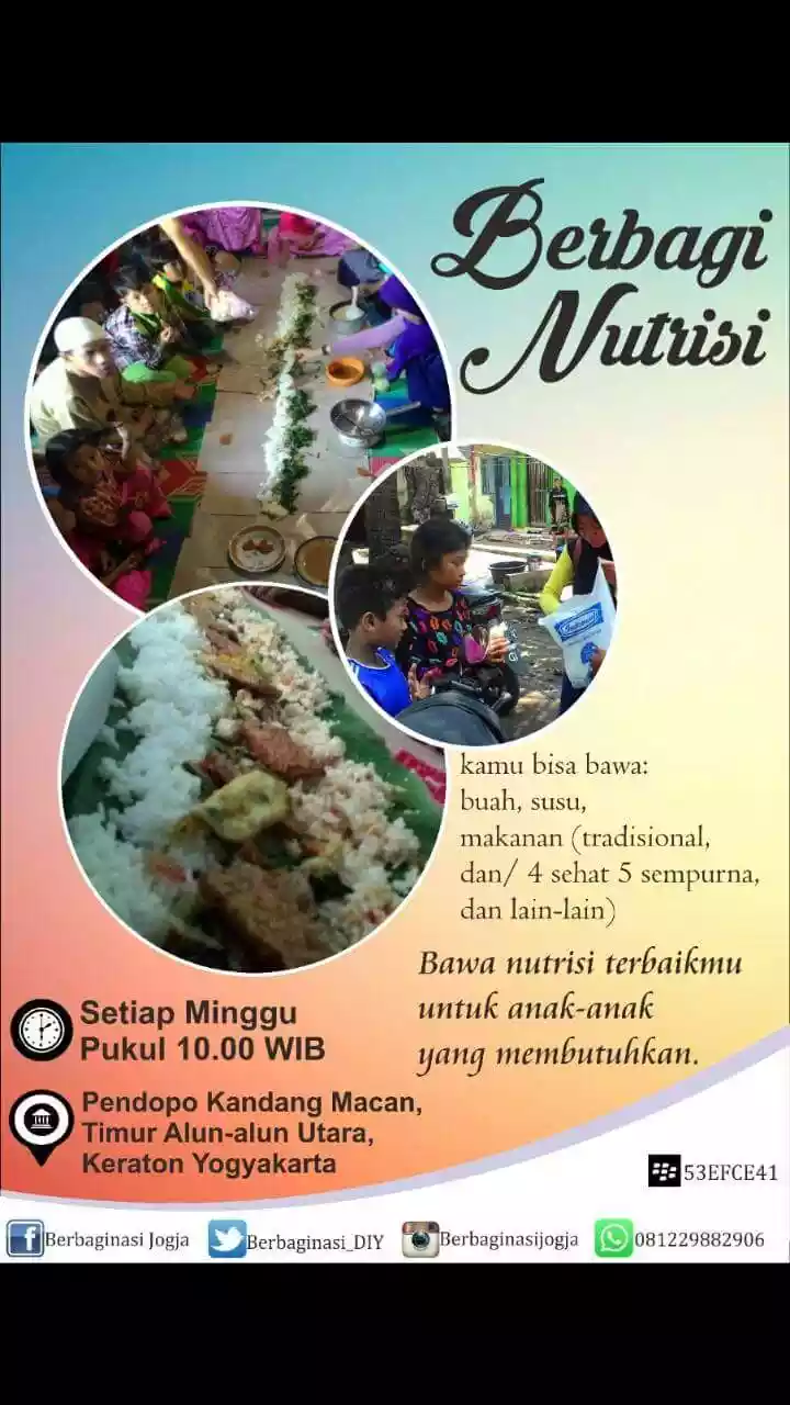 13227372_1285523228142106_1164158317852104129_o Published Mei 22, 2016 at × in Ada Lagi Loh Aksi Sosial Di Jogja, “Berbagi Nutrisi” Setiap Minggu Pagi Selanjutnya →
