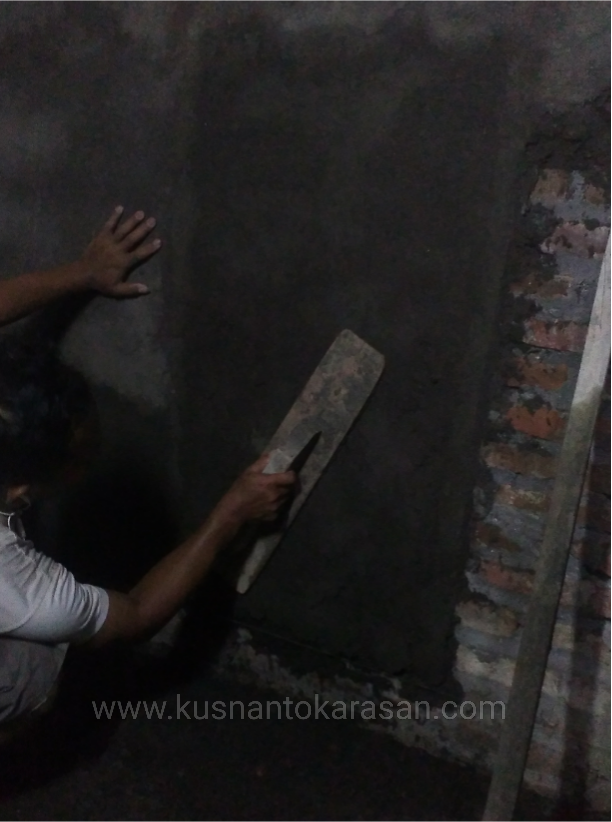 Baiklah, langsung saja kita mulai pekerjaan nglepo ini. Yang pertama adalah membuat pedoman untuk ketebalan plesteran nya. Atau istilahnya kita membuat header/ kepalan.