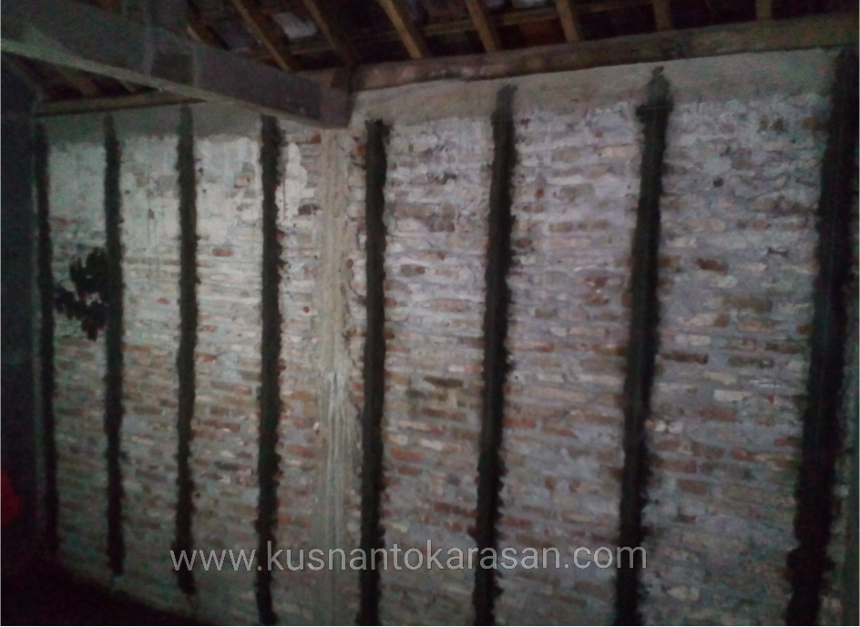 Parit-parit ini dibuat berjajar vertikal sepanjang tembok yang akan di plester, dengan jarak sekitar 60 cm.
