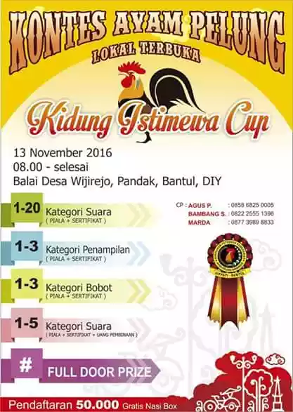 Ketentuan kontes ayam pelung kidung istimewa cup 2016 Yogyakarta