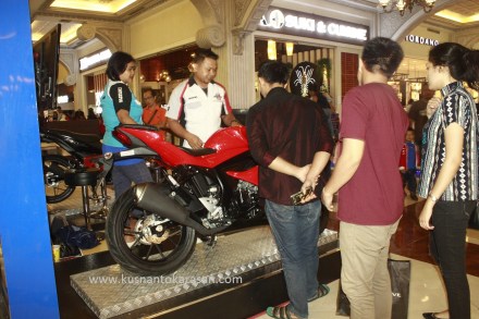 Yes, akhirnya bisa melihat wujud langsung dari motor sport fairing 150 cc dari Suzuki, yang saat ini dipajang di booth Suzuki Jogja City Mall lt 1/ GF.