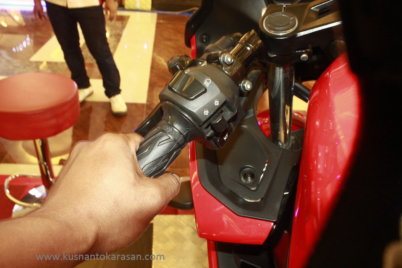 Lampu depan dengan LED, belakang masih bolam. Yang futuristik ada di kunci kontak, yakni keyless, tanps kunci kontak, hanya menggunakan remote, ada knop di ujung tanki bbm, diputar ke on, remote di pencet, takometer menyala.