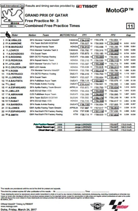 Kumpulan FP1 2 & 3 balap MotoGP seri 1 losail Qatar 2017