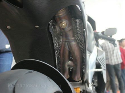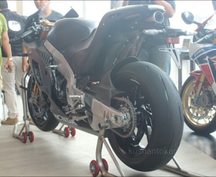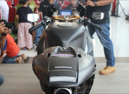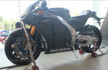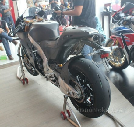 Semua terpukau saat kain hitam tabir penutup disingkap, motor replika dari motor protoype Honda MotoGP ada didepan mata.