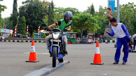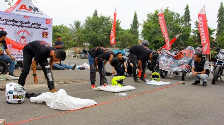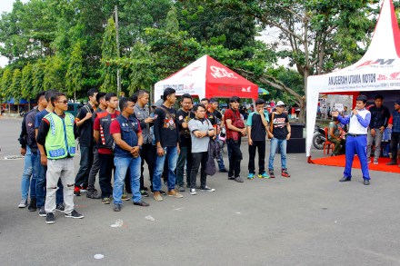 Instruktur Safety Riding Astra Motor Yogyakarta Umum Santoso memberikan edukasi singkat mengenai standar keamanan berkendara di jalan raya baik saat berkendara sendiri (solo riding) ataupun berkendara dalam rombongan (group riding) dalam kegiatan Streetfire Convoy Merdeka sekaligus Kopdargab PSJJ korwil Barlingmascakebayu (13/8).