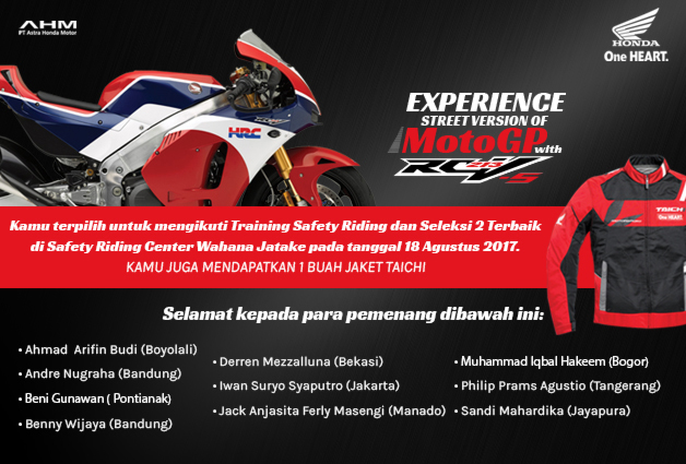 BannerRC213VS-Pemenang Published Agustus 16, 2017 at 628 × 425 in Berikut 10 Pemenang Kandidat Test-Ride RC213V-S di Sentul 10 pemenang Experience RC213V-S