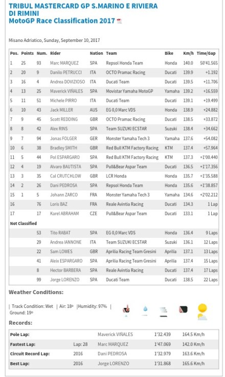 berikut Klasemen sementara MotoGP setelah balap San Marino 2017 :