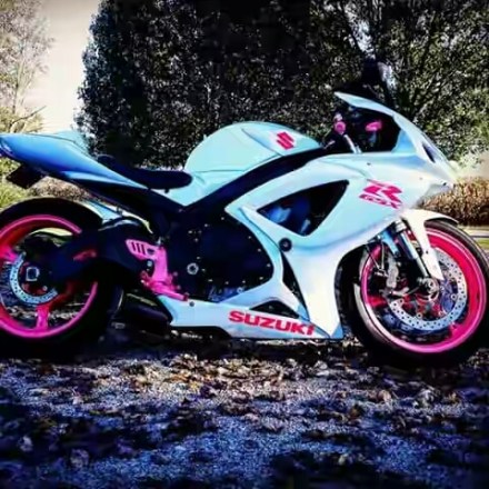 Atau jika Suzuki GSX-R 150 warna dasar putih ingin tampil girly ;