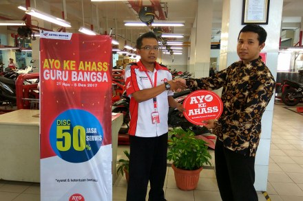 Yogyakarta – Dalam rangka memperingati hari guru yang diperingati setiap tanggal 25 November, Astra Motor Yogyakarta bersama dengan seluruh AHASS (Astra Honda Autorized Service Station) di wilayah DIY, Kedu, dan Banyumas menggelar program bertajuk Ayo Ke AHASS Untukmu Guru Bangsa. Program ini berlaku di 217 AHASS yang ada di wilayah Astra Motor Yogyakarta sejak tanggal 21 November hingga tanggal 5 Desember 2017.
