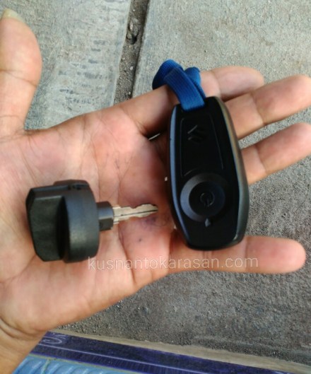 Oiya meskipun keyless dan berwujud knop, namun tetap ada anak kunci yang menempel diknop, untuk membuka tanki bbm maupun membuka bagasi pada single seat.