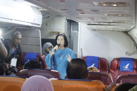 Peragaan peregangan otot pada ibu hamil saat di pesawat