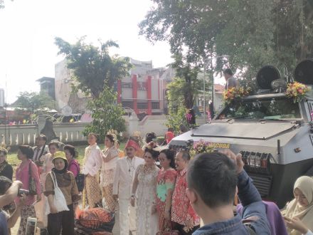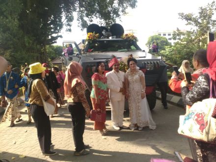 11 pasang mengucap janji suci pernikaha atau Ijab-Qabul di atas mobil perang(Panser) ‘Baracuda” dalam event Nikah Bareng Indonesiana yang diprakarsai oleh FORTAIS.