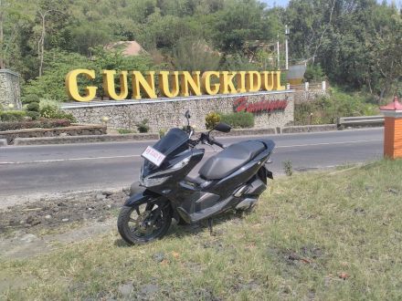 Sekitar 10 kilometer jalan Piyungan-Wonosari terlewati sudah, sedikit lega pengocok perut usai sudah dan bertemu dengan jalan Piyungan Pathuk. Disini jalan favorit saya, meskipun tidak se menatang dulu yag mana tanjakan nya tidak begitu terasa untuk saat ini. Halnya saja view disni sangat indah memandang kota Jogja dari ketinggian, bukit bintang. Dan ‘break’ sebentar sekedar shoot foto di icon Gunungkidul.