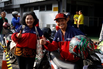 Peserta Balik Bareng Honda menunggu antrian untuk menyerahkan sepeda motor kesayangannya kepada petugas penerimaan.