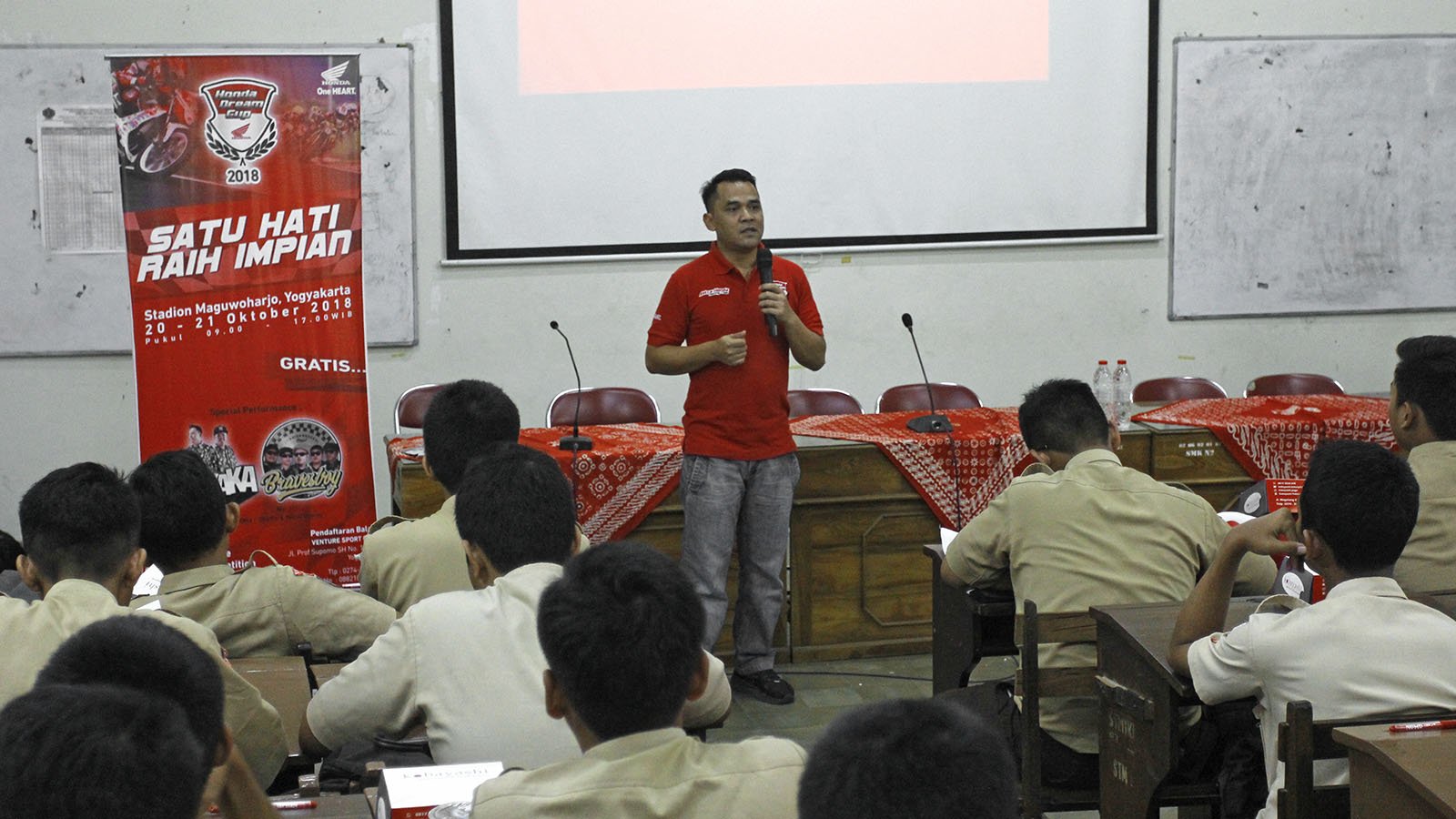 Dihadapan ratusan peserta HDC Tour Yogyakarta di SMK Negeri 2 Jetis (19/10), Motorsport Analyst PT Astra Honda Motor Sugeng Budiarto memaparkan komitmen Honda dalam pengembangan bakat pembalap-pembalap muda, salah satunya melalui perhelatan Honda Deam Cup yang telah rutin dilaksanakan sepanjang 14 tahun terakhir.