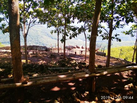 Kemudian kita berjalan kearah barat daya menuju spot view yang sangat menarik, yang mana kita bisa memandang jauh dan luas hijaunya pegunungan, lembah dan sungai Oya yang meliuk-liuk di antara lembah pegunungan wilayah perbatasan antara kabupaten Bantul dan Gunungkidul. Pun juga nun jauh di ujung barat sana kita bisa melihat samar pemakaman raja-raja Imogiri.