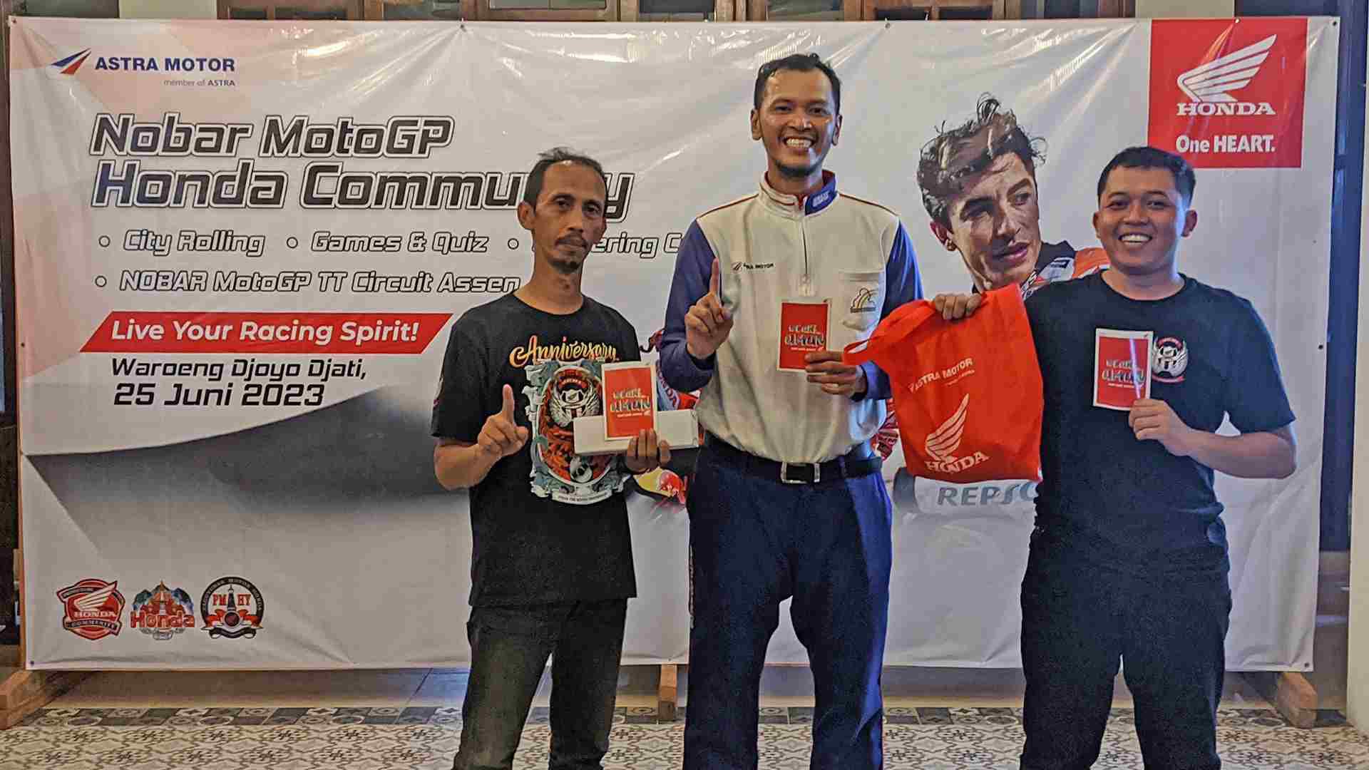 “Kami menyelenggarakan kegiatan ini sebagai wadah untuk komunitas motor Honda pecinta MotoGP di Yogyakarta dan sekitarnya. Selain itu kegiatan ini kami proyeksikan sebagai ajang silaturahmi antar komunitas motor Honda sekaligus berbagi inspirasi dan informasi satu sama lain.” Ungkap Marketing Manager Astra Motor Yogyakarta Henry Setiawan.