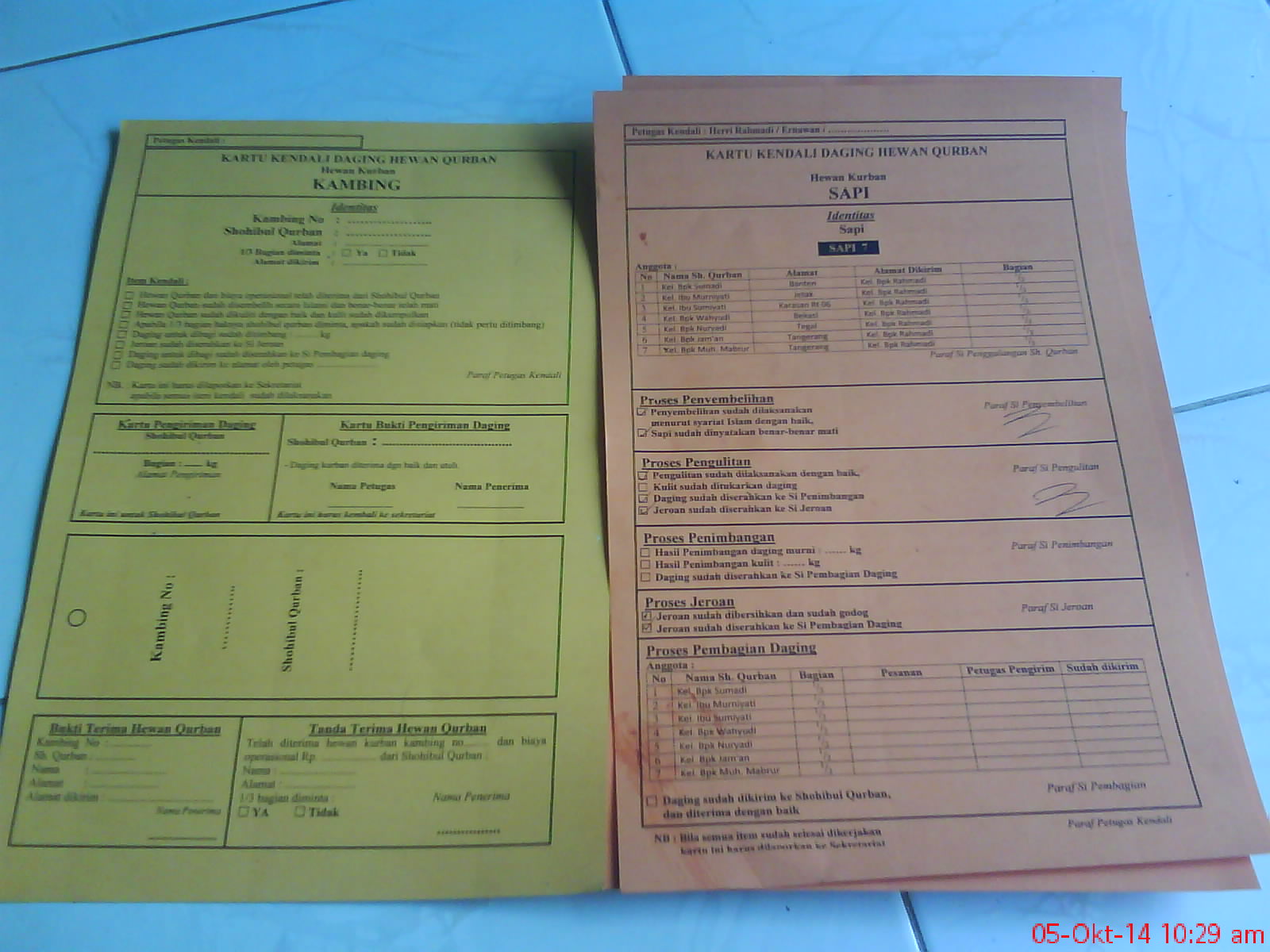 kesekretariatan panitia saat penyembelihan hewan qurban