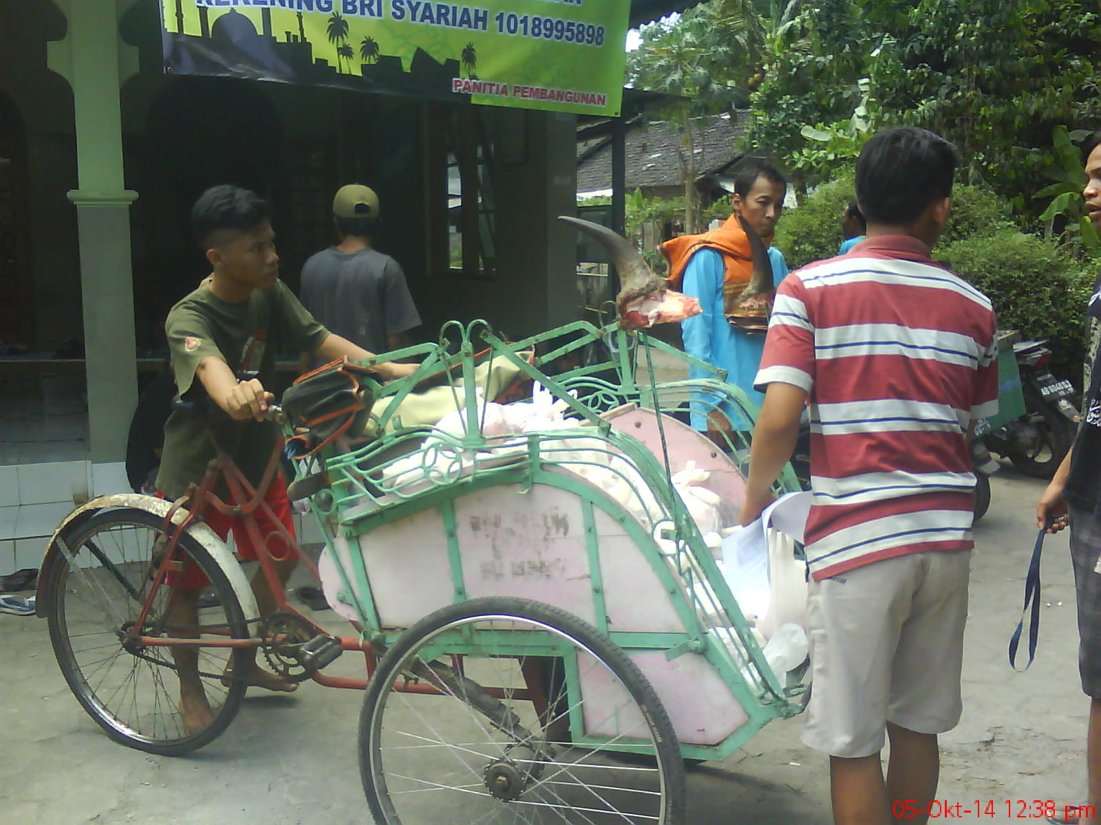 Distribusi daging Qurban kuntuk di bagikan ke seluruh warga dusun Karasan oleh remaja per-RT menggunakan ‘keser’