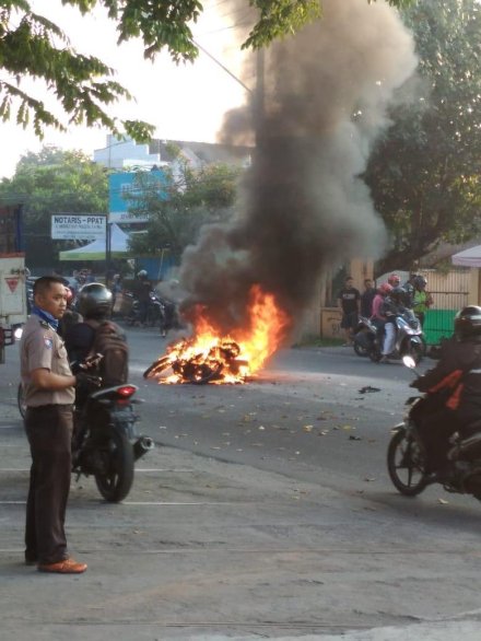 Selasa ( 12/03) kemarin lusa, Mimin sendiri sempat melihat secara langsung motor terbakar di tengah jalan, jl Bantul, tepat di depan masjid Al Wafa – Cepit, Pendowoharjo, Sewon. Tak ada yang bisa dilakukan orang-orang sekitar, api sudah sangat besar, ngeri juga sih, mereka hanya bisa mengabadikan melalui ponsel pintar mereka.