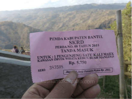 Untuk masuk ke lokasi obyek wisata ini kita mesti membayar 5.750 rupiah untuk satu orang , itu sudah termasuk ongkos parkir.
