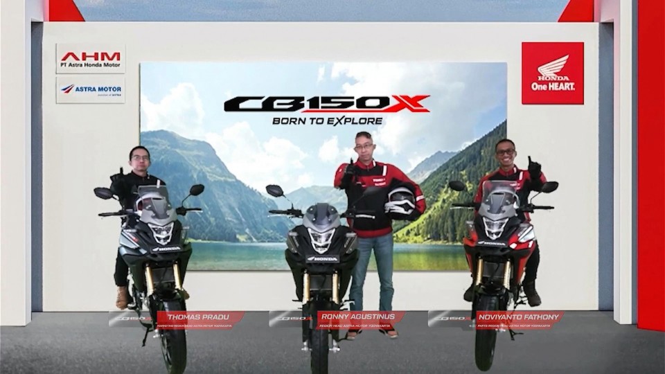 “Dalam kesempatan kali ini kami memperkenalkan New CB150X secara online dan offline sekaligus. Kami optimis, motor sport terbaru dari Honda dengan konsep adventure touring ini akan mendapatkan sambutan hangat dari masyarakat.” ungkap Kepala Wilayah Astra Motor Yogyakarta Ronny Agustinus.