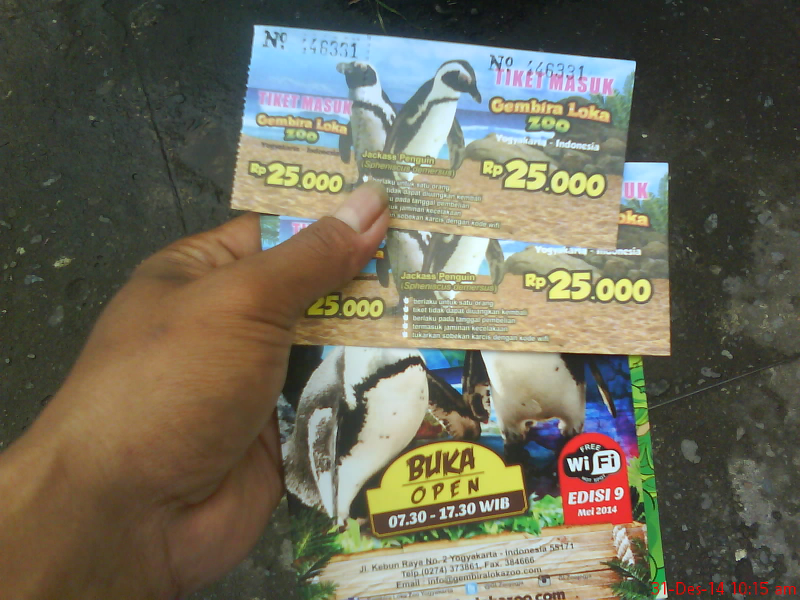 Nah setelah kita mengetahui sejarah dari Gembira Loka Zoo, (yang dulunya bersama Kebun Raya dan Kebun Binatang Gembira Loka), Mari kita lanjutkan  menikmati indahnya pepohonan, segarnya udara dibawah rimbunnya pepohonan dan melihat aneka satwa koleksi kebun Raya dan Kebun Binatang Gembira Loka. Diawali dengan pintu masuk, sebelumnya kita beli tiket dulu yach. Untuk masuk Ke Gembira Loka saat ini Harga Tiket Masuk (HTM)nya Rp 25.000,00/pengunjung, anak diatas usia 5 tahun bayar sendiri ya.